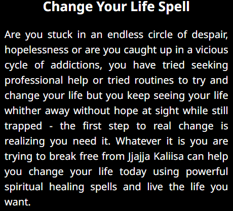 "I was burdened with addiction, and it was ruining my life. JJAJJA KALLISA compassionate guidance and powerful spells helped me break free from my destructive habits. I've regained control over my life, and I can't thank him enough."