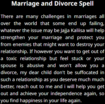 I had been struggling to find true love for years until I came across JJAJJA KALIISA love spells. Her magic worked wonders, and now I'm happily married to the man of my dreams. Thank you JJAJJA for bringing love into my life!